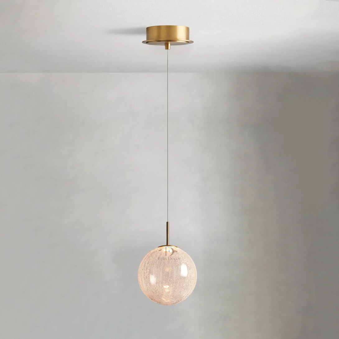 - Crafted from stainless steel with a satin brass finish and a mouth blown solid opal glass globe or crackle glass globe.