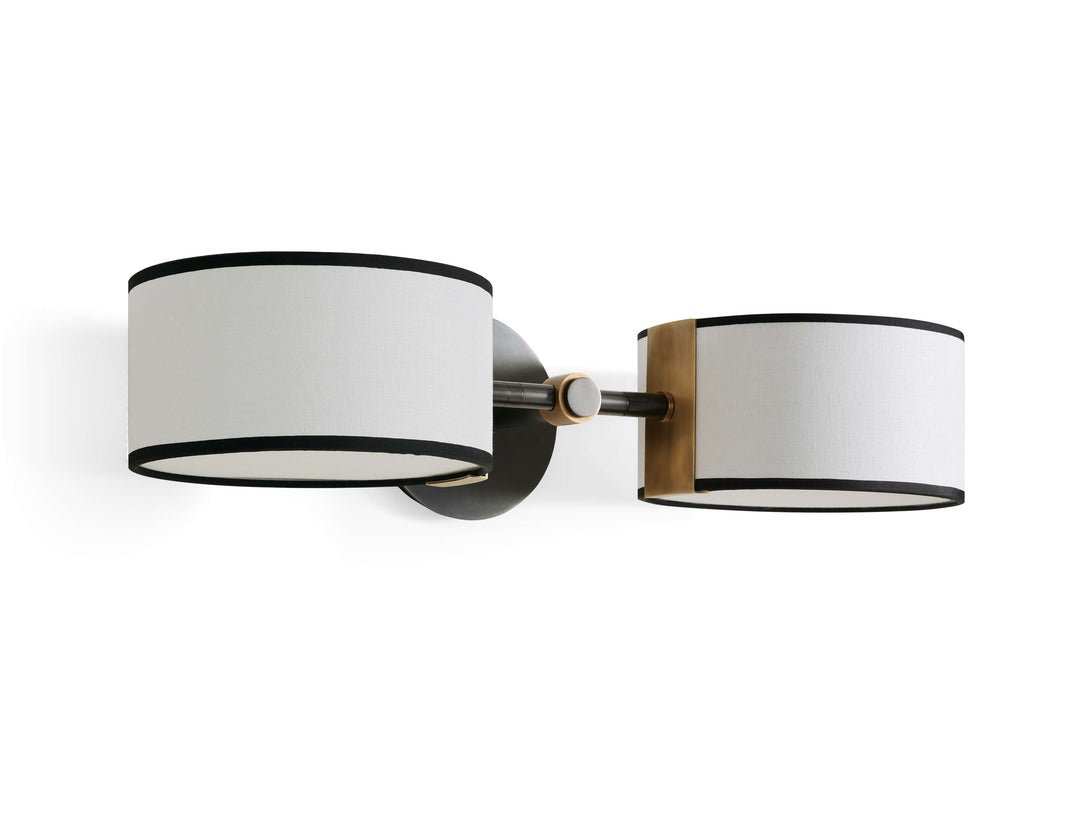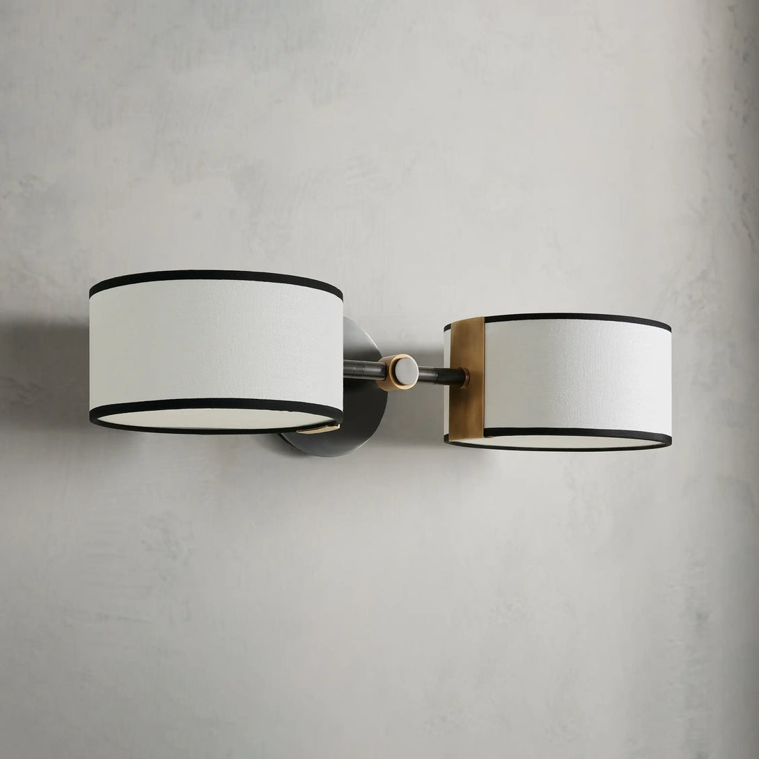 - Bronze fixtures include a white linen shade with black trim; light bronze fixtures include a cream parchment shade with brown trim.