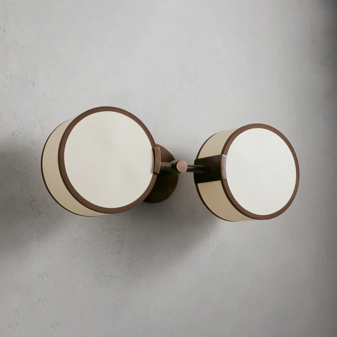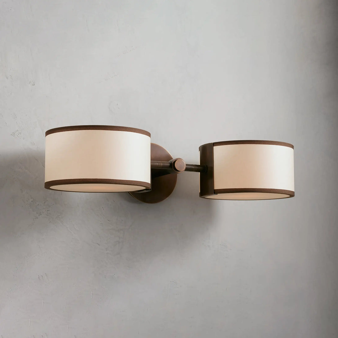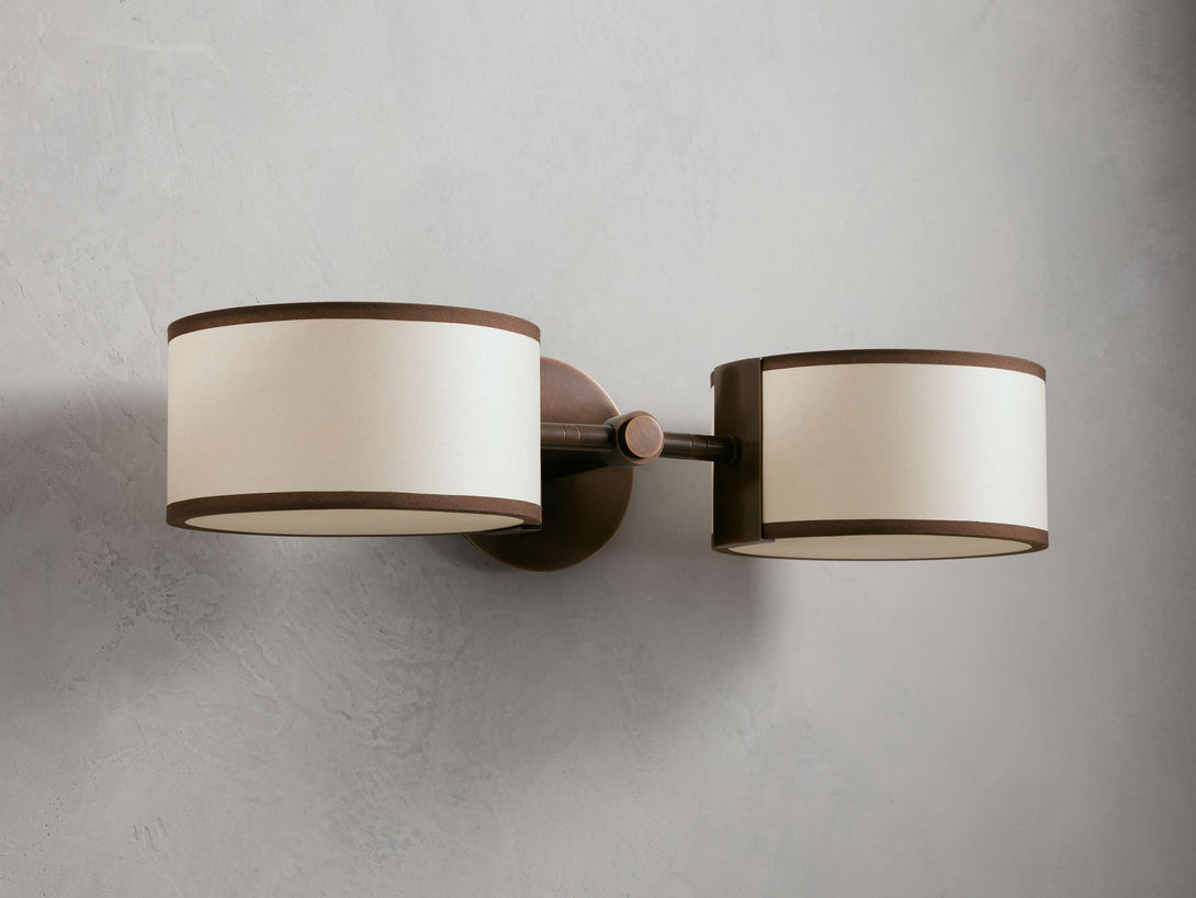 - Bronze fixtures include a white linen shade with black trim; light bronze fixtures include a cream parchment shade with brown trim.