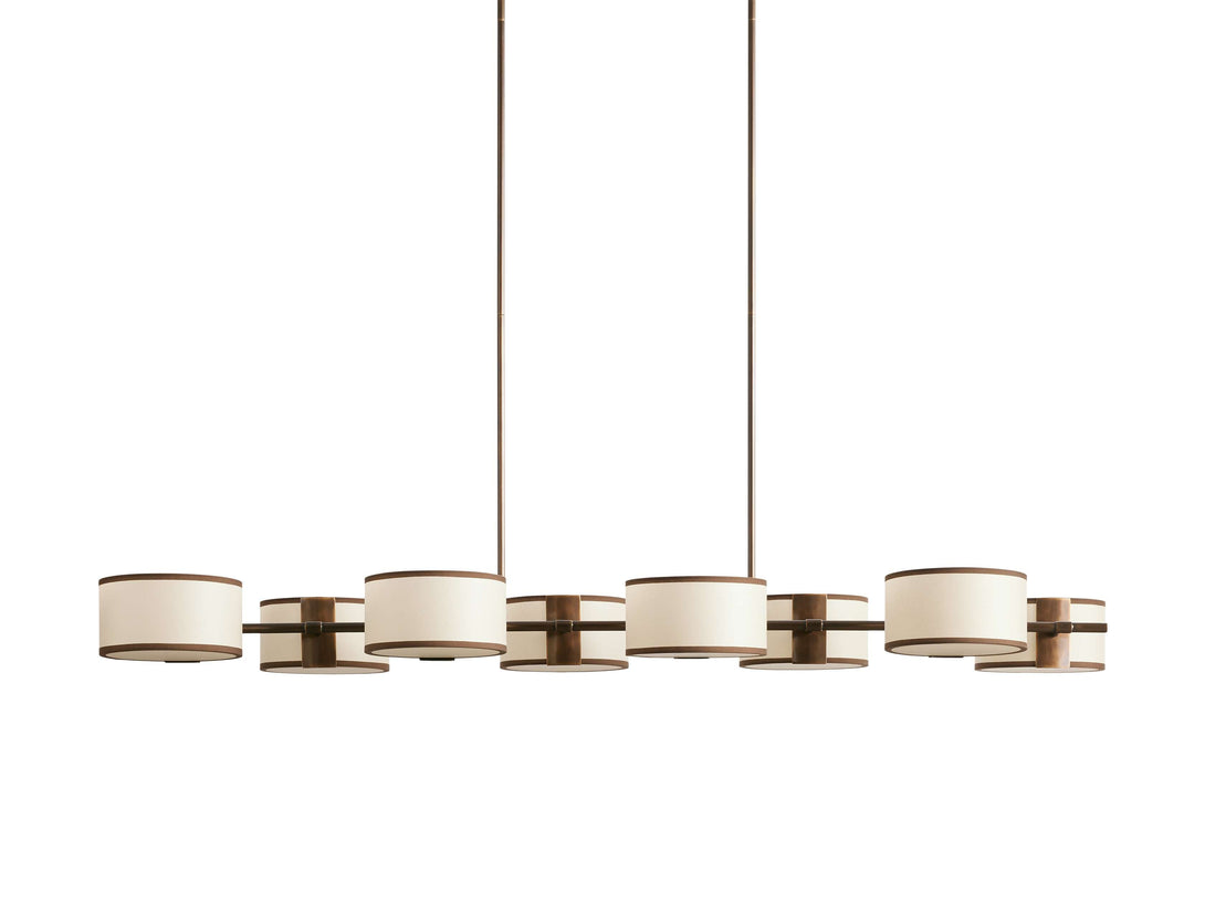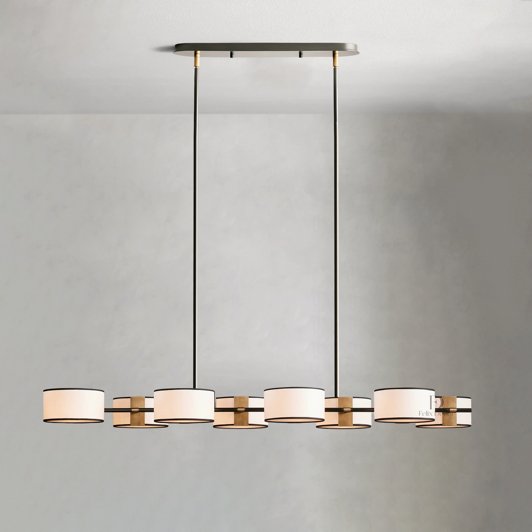 - Bronze fixtures include a white linen shade with black trim; light bronze fixtures include a cream parchment shade with brown trim.