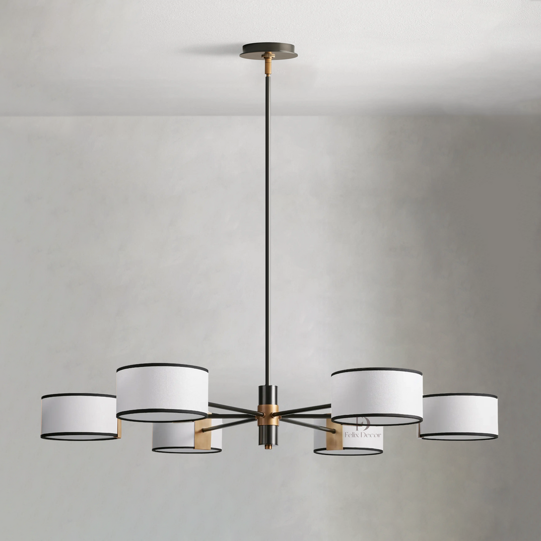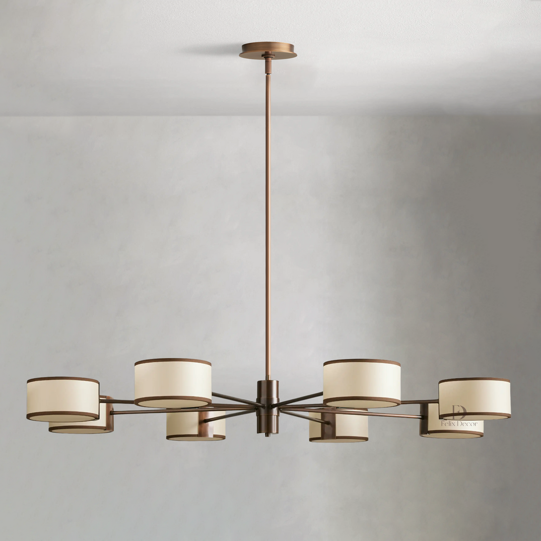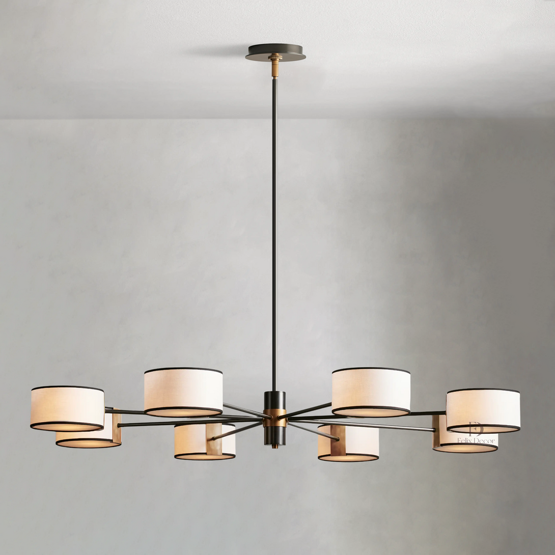 - Bronze fixtures include a white linen shade with black trim; light bronze fixtures include a cream parchment shade with brown trim.