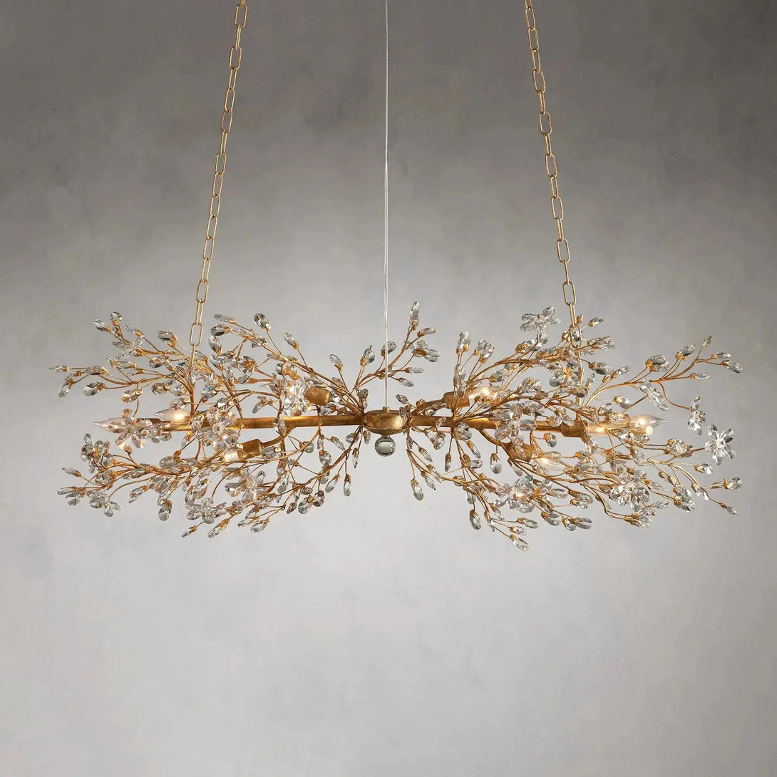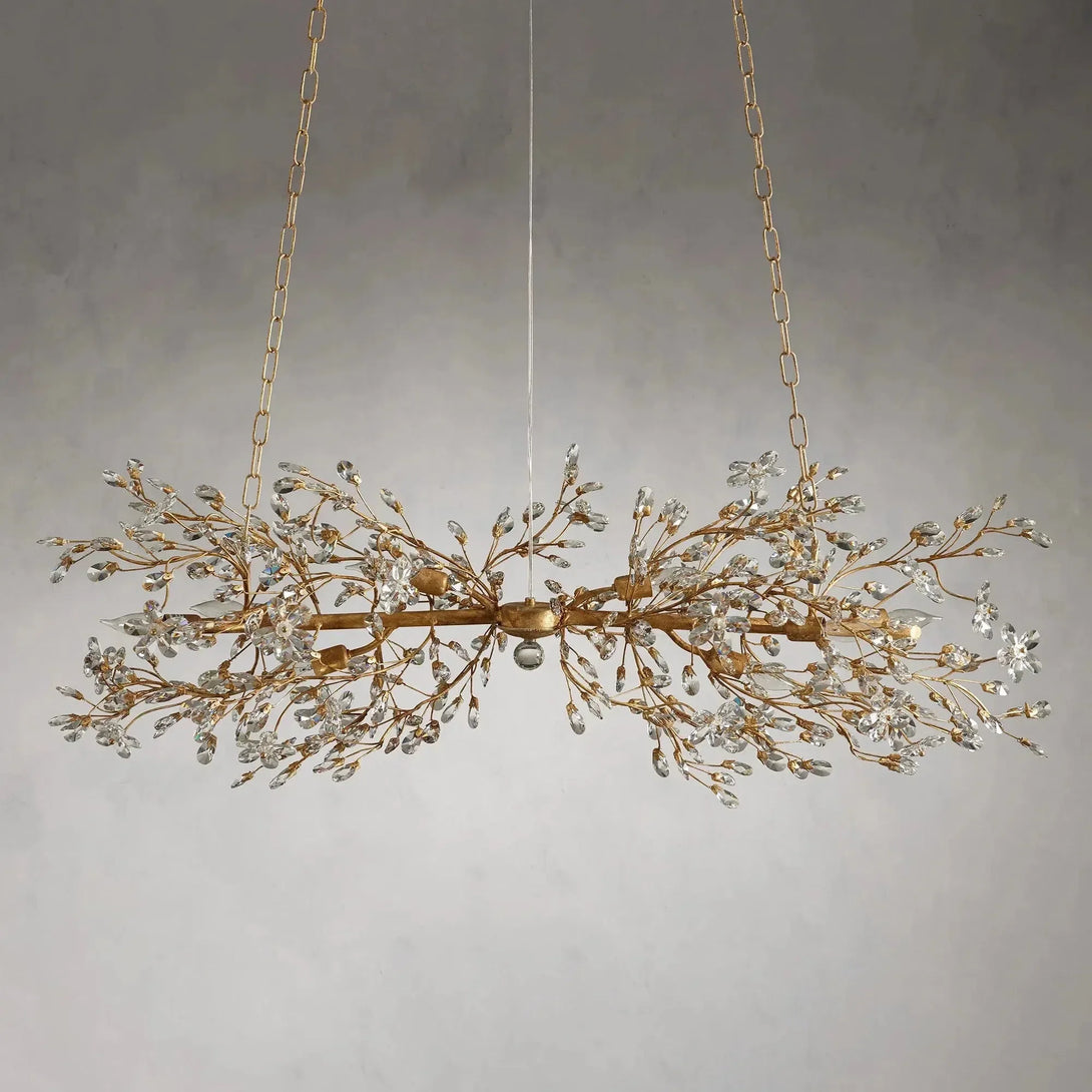 Luxurious crystal flowers and droplets illuminate each branch of our elegant Fiore lighting collection. Each piece is crafted in solid iron by our artisan partners from Italy and hand-polished with silver or gold leaf, inspired by the beauty of nature and showcasing quality craftsmanship. From the dining room to the entryway, Fiore will be a highlight and add charm to any space.