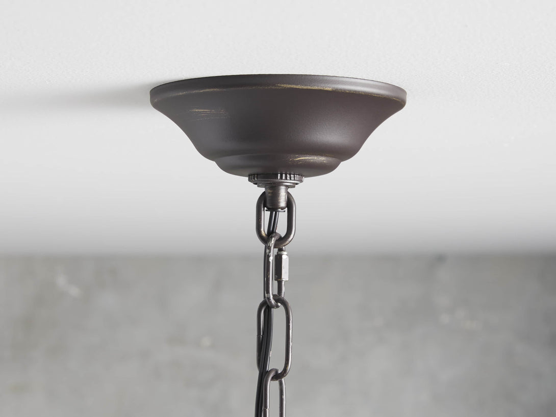 - Iron cage frame features an antiqued metallic finish complemented by Italian crystal spheres.