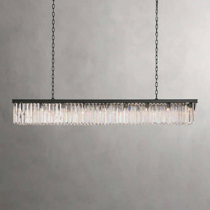 - French Art Deco style of the 1920s is reborn in our glamorous Leyland Lighting Collection. Hung from a rustic iron frame, Leyland creates an atmospheric glow with its rows of hand-polished multifaceted glass crystals.