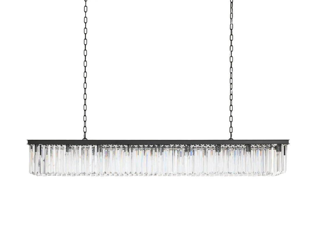 - Crafted from multifaceted K9 glass crystals with an iron frame and oil-rubbed finish.