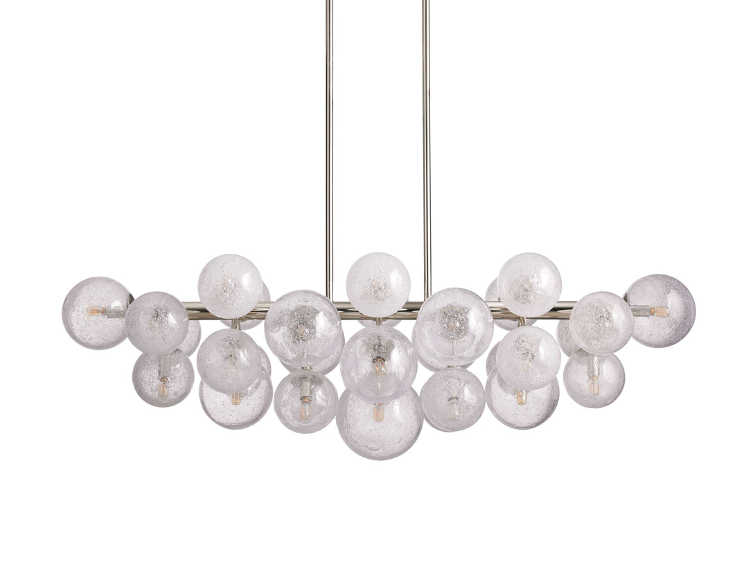 - Crafted from burnished brass, bronze, or polished nickel-finished steel and aluminum with hand-blown glass globes.