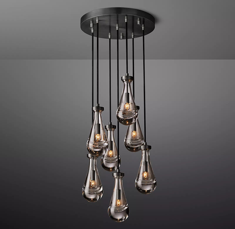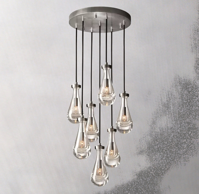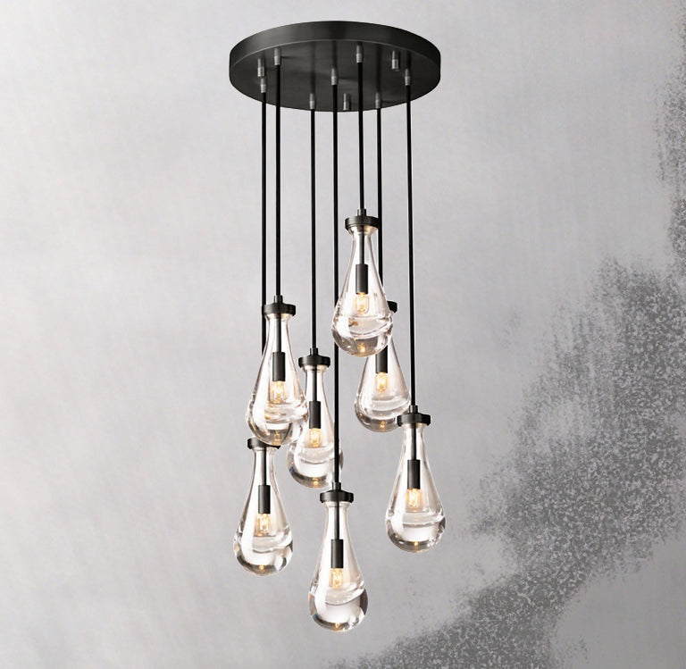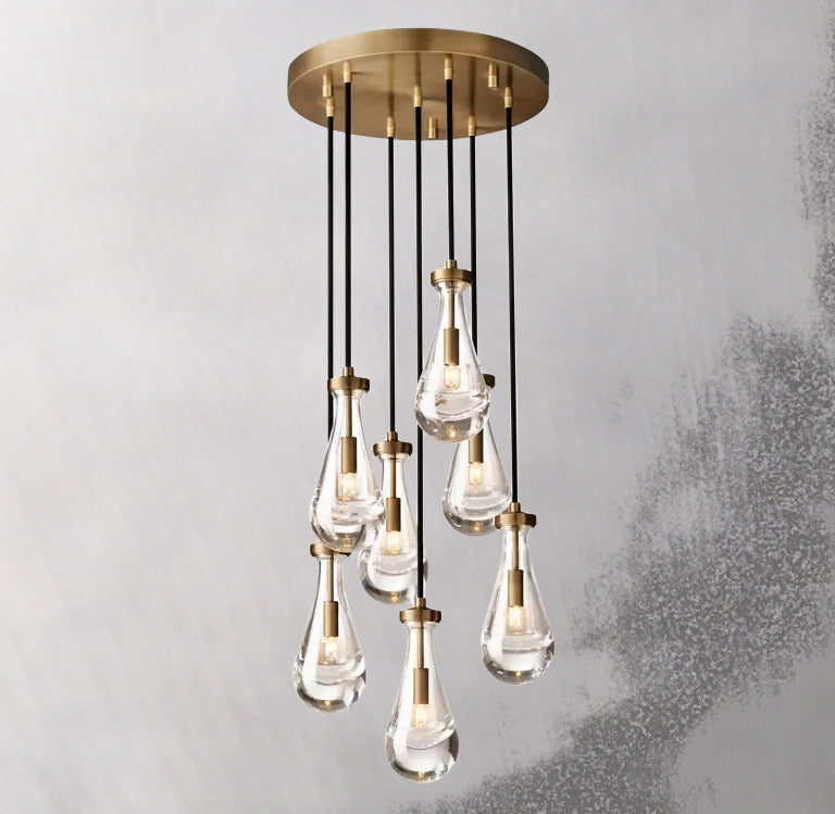 Each clear raindrop pendant is handmade, highlighting the artistic atmosphere. Each raindrop pendant is carefully blown and polished by workers with many years of manual experience. The fittings are made of solid brass with high surface finish and exquisite workmanship. Perfect presentation of this lighting, high-quality technology and high-quality materials. Highlight the artistic atmosphere.