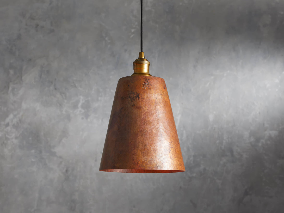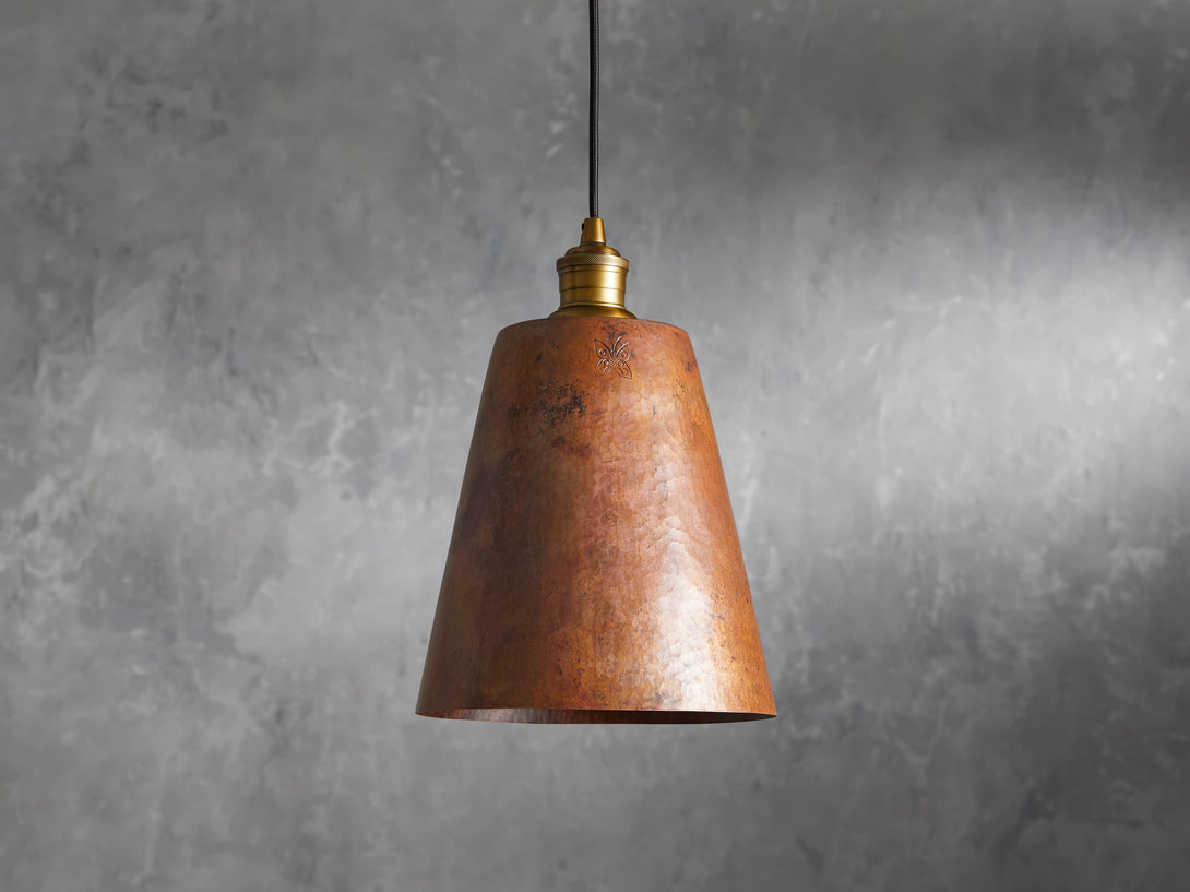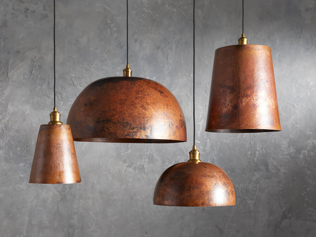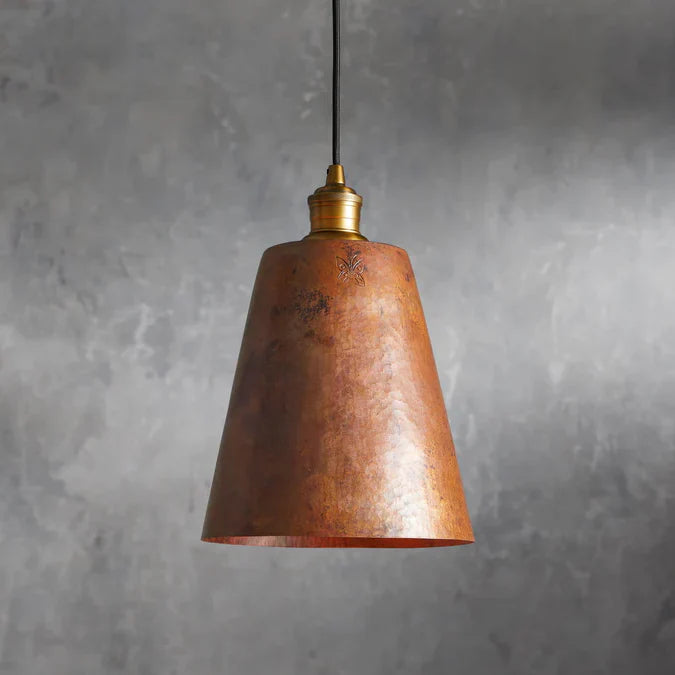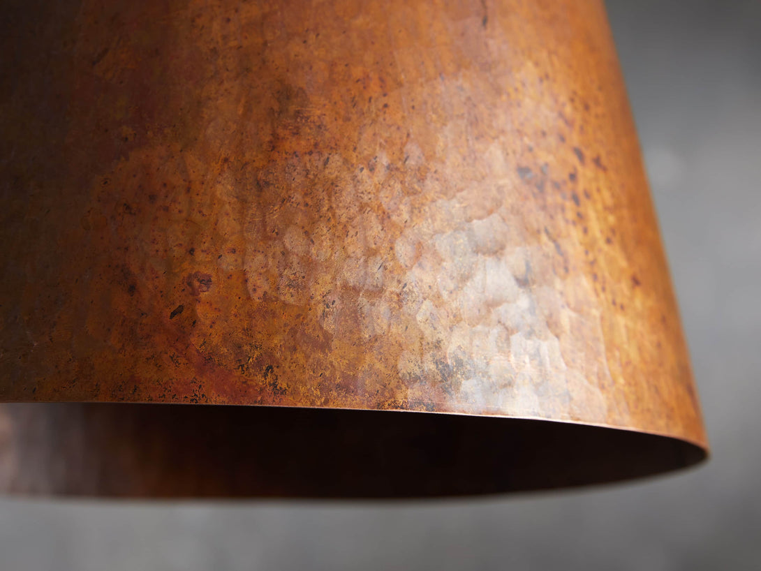 - Crafted from hammered recycled metal with a copper finish.